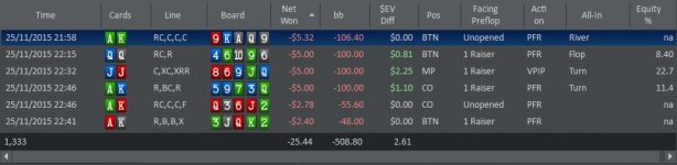 Hand 1. With the 4 bet I probably should have at least been able to fold to the re-raise. I put myself in a bad spot here by being too committed didn't I?