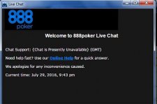More than 24 hours ago, I made a deposit to 888 Poker and talked to a support agent via live chat about a bonus - a ticket to a new depositors freeroll which she had applied to my account. The live chat was cut off by 888's system before I could even finish the chat with the agent.