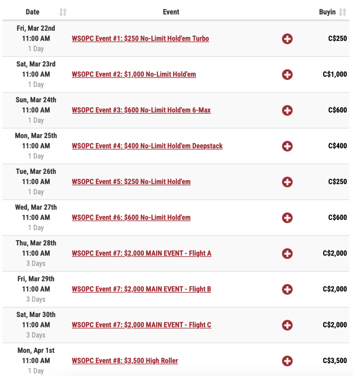 The series is part of WSOP’s international Circuit schedule. It’s one of three stops in Canada this season. Right after its stop in Toronto, it heads to the Playground in Montreal for a 15 event series. In May, the WSOP hits Deerfoot Casino in Calgary.